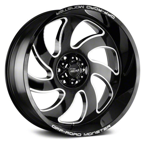 This 20x10 Off Road Monster M07 Gloss Black Milled 8-Lug Wheel is completed in a high-quality gloss black finish with steel milled accents that will create a striking appearance. There's a durable clear coat that protects against driving hazards.