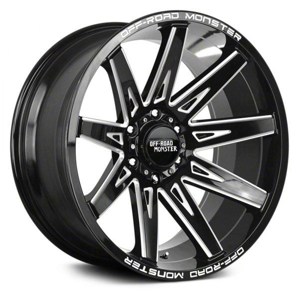 Off Road Monster M25 Gloss Black Milled 6-Lug Wheel; 22x12; -44mm Offset offers a sleek and modern design that enhances the visual appeal of any vehicle. Crafted with attention to detail, this wheel merges aesthetic elegance with a robust build, making it a fitting choice for those seeking a blend of style and durability.