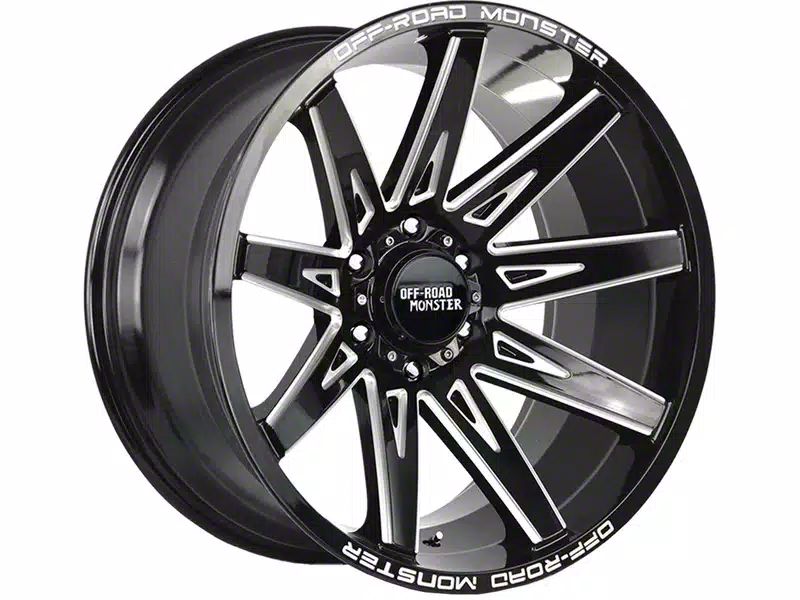 The 20x10 Off-Road Monster M25 Gloss Black Milled 6-Lug Wheel is completed in a high-quality gloss black finish, with steel milled accents. Thanks to a durable clear coat, the finish looks amazing and also protects against the rigors of driving.