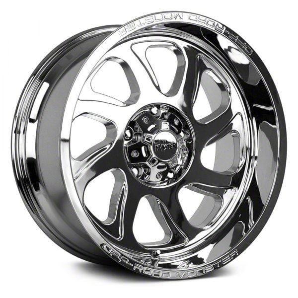 Off Road Monster M22 Chrome 8-Lug Wheel; 20x10; -19mm Offset. The Off Road Monster M22 Chrome 8-Lug Wheel offers a striking balance of style and refinement. Its unique design accentuates the vehicle's aesthetic, while the premium construction underscores its robust nature. This wheel is a perfect choice for those seeking both elegance and a strong visual statement.