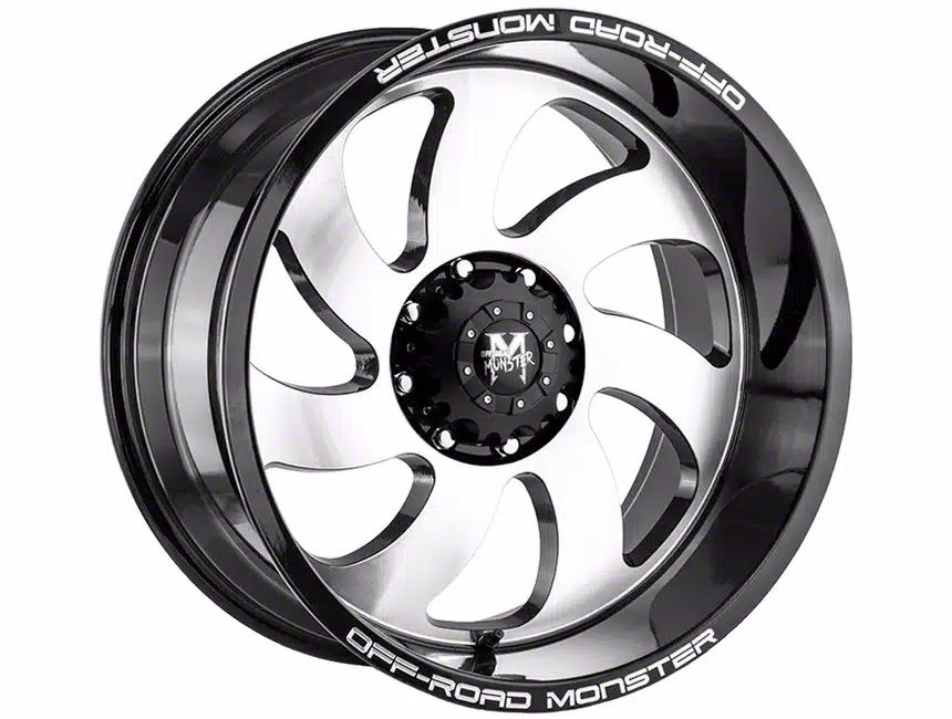 This 22x12 Off Road Monster M07 Gloss Black Machined 8-Lug Wheel is completed in a high-quality gloss black finish with machined accents to create an impressive appearance. There's a durable clear coat that protects against driving hazards.