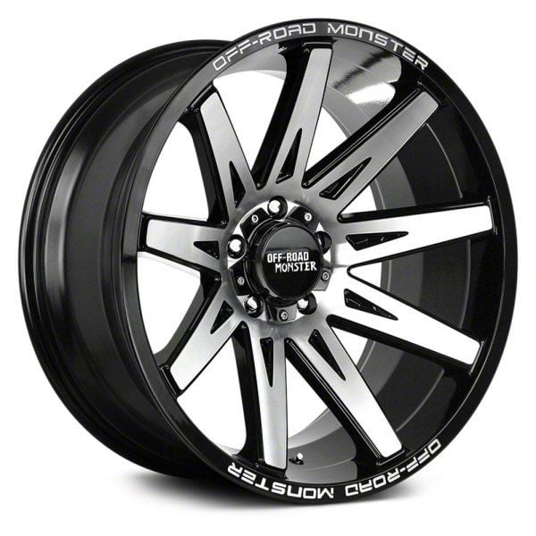 The 22x12 Off Road Monster M25 Gloss Black Machined 6-Lug Wheel is completed in a high-quality gloss black finish, with machined accents. Thanks to a durable clear coat, the finish looks amazing and also protects against the rigors of driving.