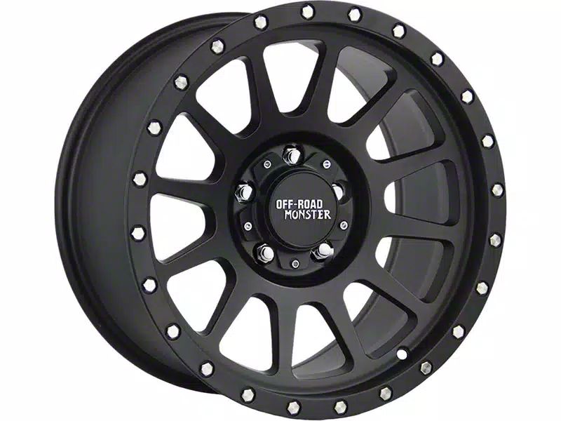 Off-Road Monster M10 Flat Black 6-Lug Wheel; 17x9; 0mm Offset. The Off-Road Monster M10 Flat Black 6-Lug Wheel offers a striking balance of style and refinement. Its unique design accentuates the vehicle's aesthetic, while the premium construction underscores its robust nature. This wheel is a perfect choice for those seeking both elegance and a strong visual statement.