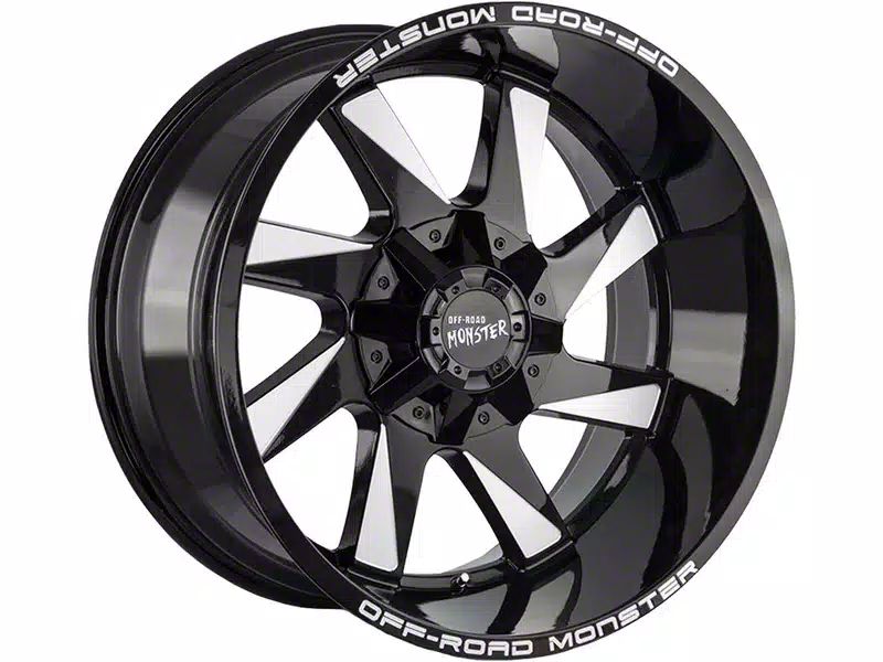 Off-Road Monster M80 Gloss Black Milled 6-Lug Wheel; 20x12; -44mm Offset. The Off-Road Monster M80 Gloss Black Milled 6-Lug Wheel offers a striking balance of style and refinement. Its unique design accentuates the vehicle's aesthetic, while the premium construction underscores its robust nature. This wheel is a perfect choice for those seeking both elegance and a strong visual statement.