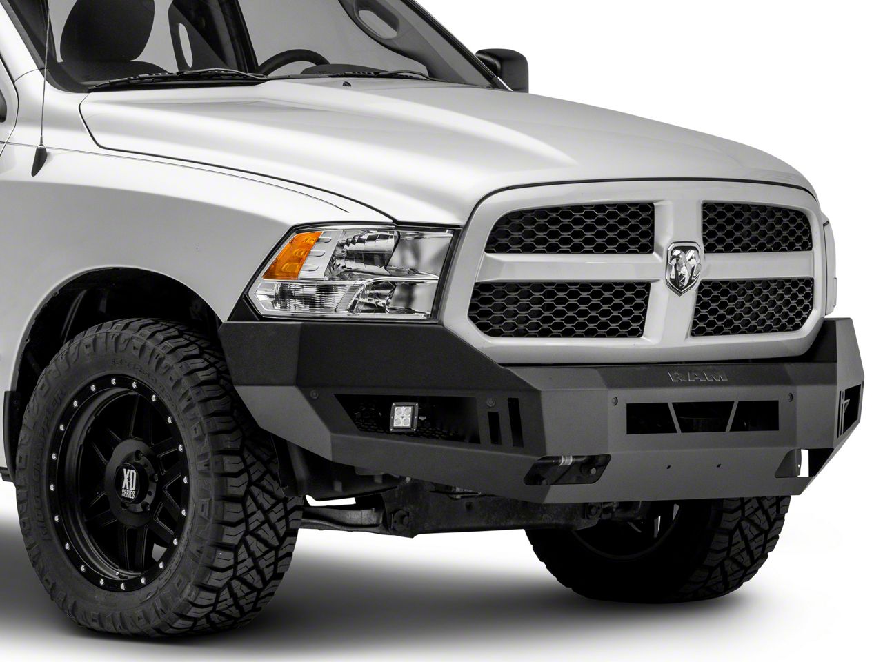 Rugged Styling. Add rugged, off-road styling to your 2013-2018 RAM 1500 by installing a RAM Licensed by RedRock Extreme HD Front Bumper. Designed to easily replace your factory bumper, this RAM Extreme HD Front Bumper features a pair of high powered LED cube fog lights to light the dark path ahead. Built tough from heavy duty steel plate, this RAM Extreme HD Bumper is ideal for street, work and off-road applications. Additionally, the officially licensed embossed RAM logo adds a nice subtle accent that’s sure to impress your fellow RAM truck enthusiasts.