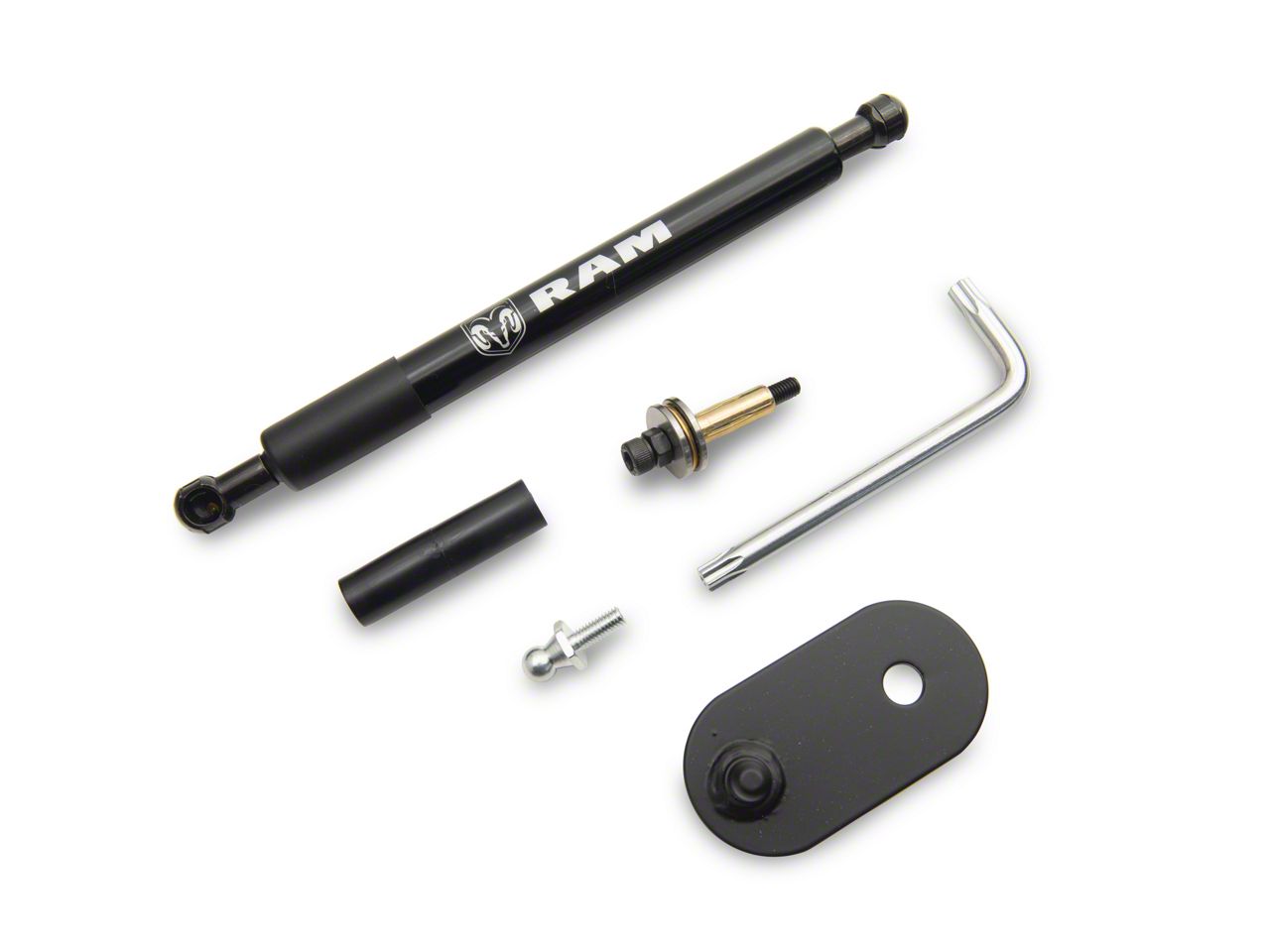 Simple, Bolt-on Installation. The RAM Tailgate Assist was designed to be a direct bolt-on upgrade reusing existing factory mounting points. There is no drilling or modifications required for a simple straight forward install. With just a set of basic hand tools this Tailgate Assist can be installed in less then 30 minutes.