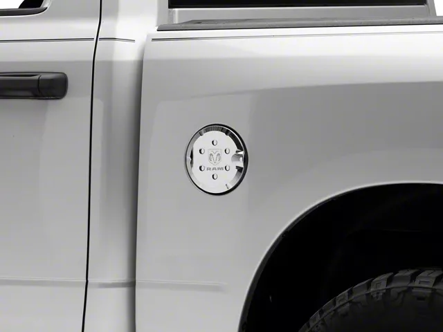 Striking Styling. Add striking styling to the exterior your RAM 1500 with a RAM Officially Licensed Fuel Tank Door Cover. This Fuel Door Cover features a bright chrome finish with RAM Licensed by RedRock's Head and RAM text logos that are sure to impress your fellow RAM truck enthusiasts.