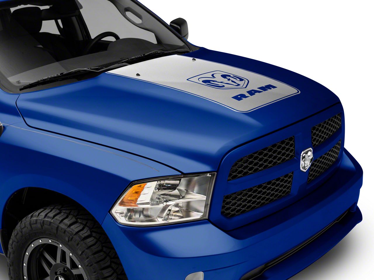 Application. This RAM® Officially Licensed Hood Decal with RAM Head Logo; Silver is designed to fit 2009-2018 RAM 1500, excluding Rebel models.