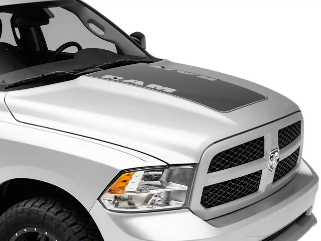 Application. This RAM® Officially Licensed Hood Decal with RAM Text Logo; Anthracite is designed to fit 2009-2018 RAM 1500, excluding Rebel models.