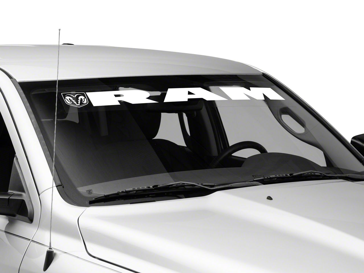 Application. This RAM Licensed by RedRock RAM with Head and Logo Windshield Banner; White is designed to fit 2002-2018 RAM 1500 models.