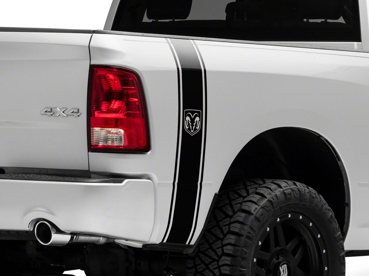 Vertical Tail Stripes with RAMs Head Logo. Add exciting exterior styling to your RAM with these rear Vertical Tail Stripe Decals that feature the RAMs Head Logo. These RAM Licensed by RedRock Vertical Stripes are a great way to give your RAM a bolder, sportier appearance that looks great both on and off-road.