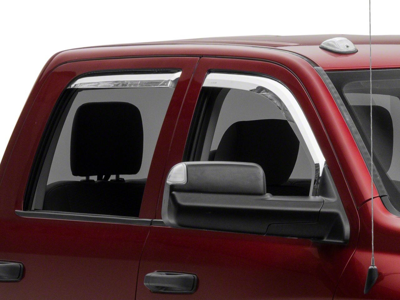 Fresh Air Circulation. These RAM Licensed by RedRock Element Chrome Window Visors, sometimes called rain guards, are an excellent way to let fresh air circulate through your RAM's cabin while keeping rain and the elements out. Side Window Visors will allow you to crack your windows while parked, keeping the interior cooler in the hot summer months, without the fear of a sudden down pour soaking your interior. Additionally, the RAM Licensed by RedRocks Head and RAM text logo adds a nice subtle accent that’s sure to impress your fellow RAM enthusiasts.