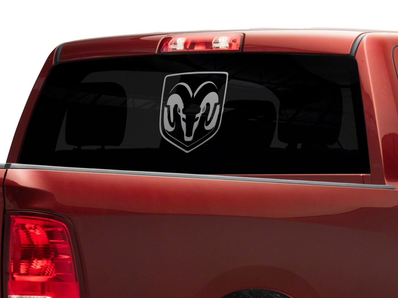 RAMs Head Logo. Now you can let everyone know that your truck is RAM Tough with this RAM Licensed by RedRock's Head Logo Decal. This RAMs Head Decal measures 11 x 12 inches and can be applied to any smooth flat surface and looks especially good in your rear window or on your tailgate.