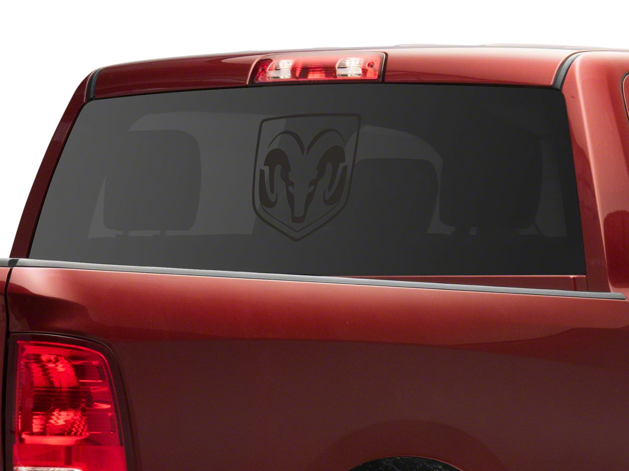 RAMs Head Logo. Now you can let everyone know that your truck is RAM Tough with this RAM Licensed by RedRock's Head Logo Decal. This RAMs Head Decal measures 11 x 12 inches and can be applied to any smooth flat surface and looks especially good in your rear window or on your tailgate.