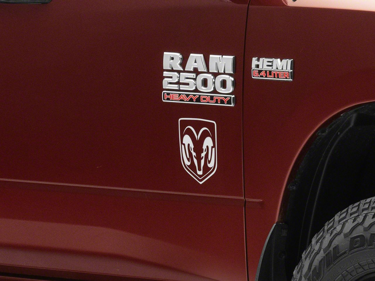 Application. This RAM Licensed by RedRock Small RAM Head Logo; White is designed to fit 2003-2018 RAM 2500 models. Sold individually.