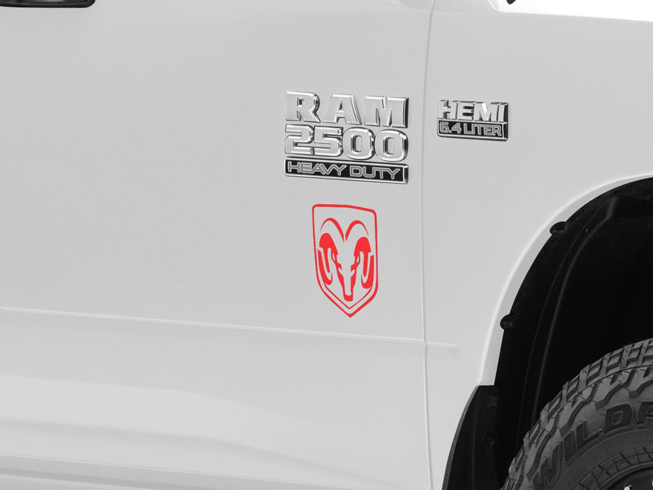Application. This RAM Licensed by RedRock Small RAM Head Logo; Red is designed to fit 2003-2018 RAM 3500 models. Sold individually.