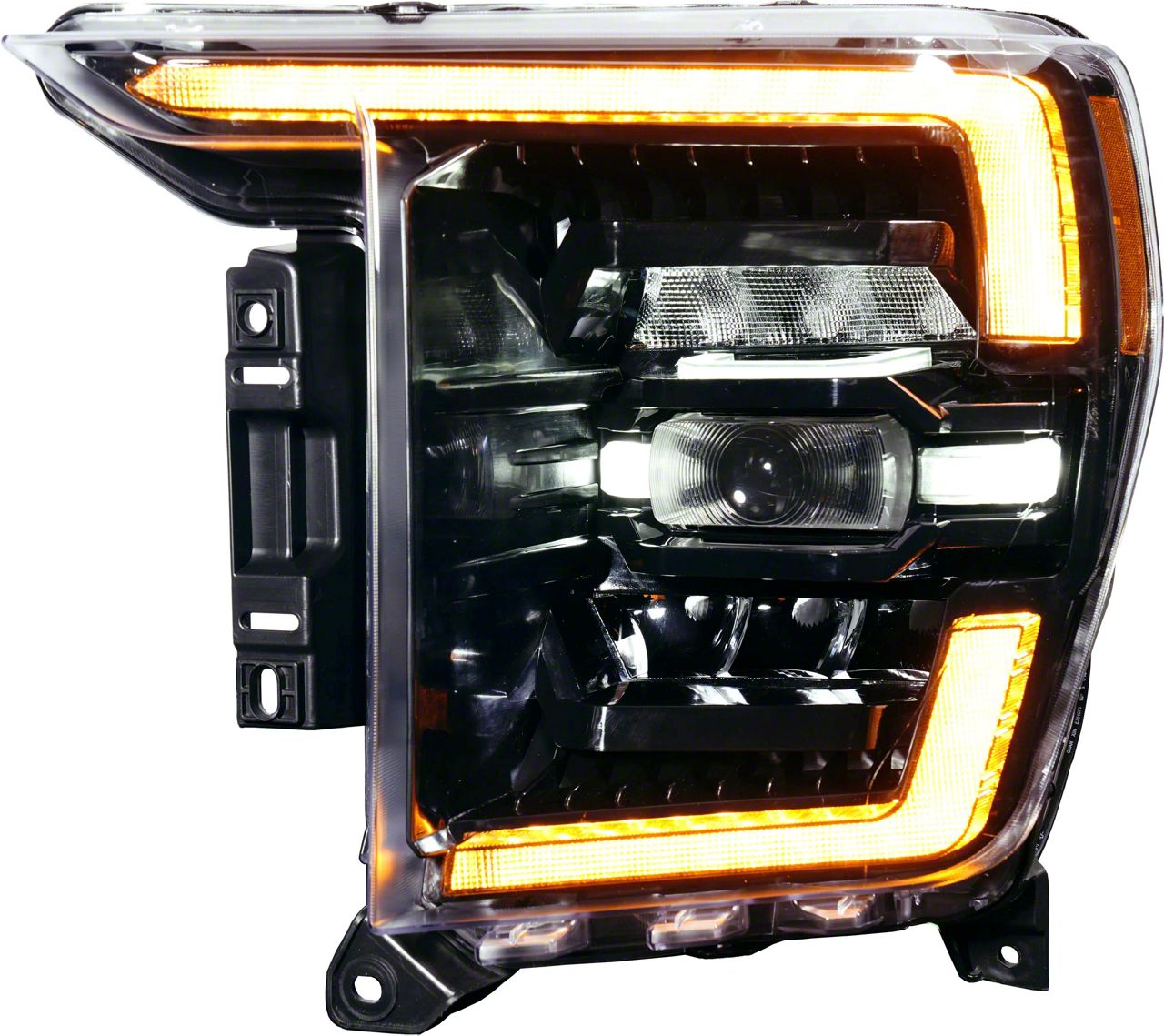 Application. These OLM Infinite Series LED Headlights with Amber DRL fit 2021-2023 F-150 models with factory halogen and LED reflector headlights.