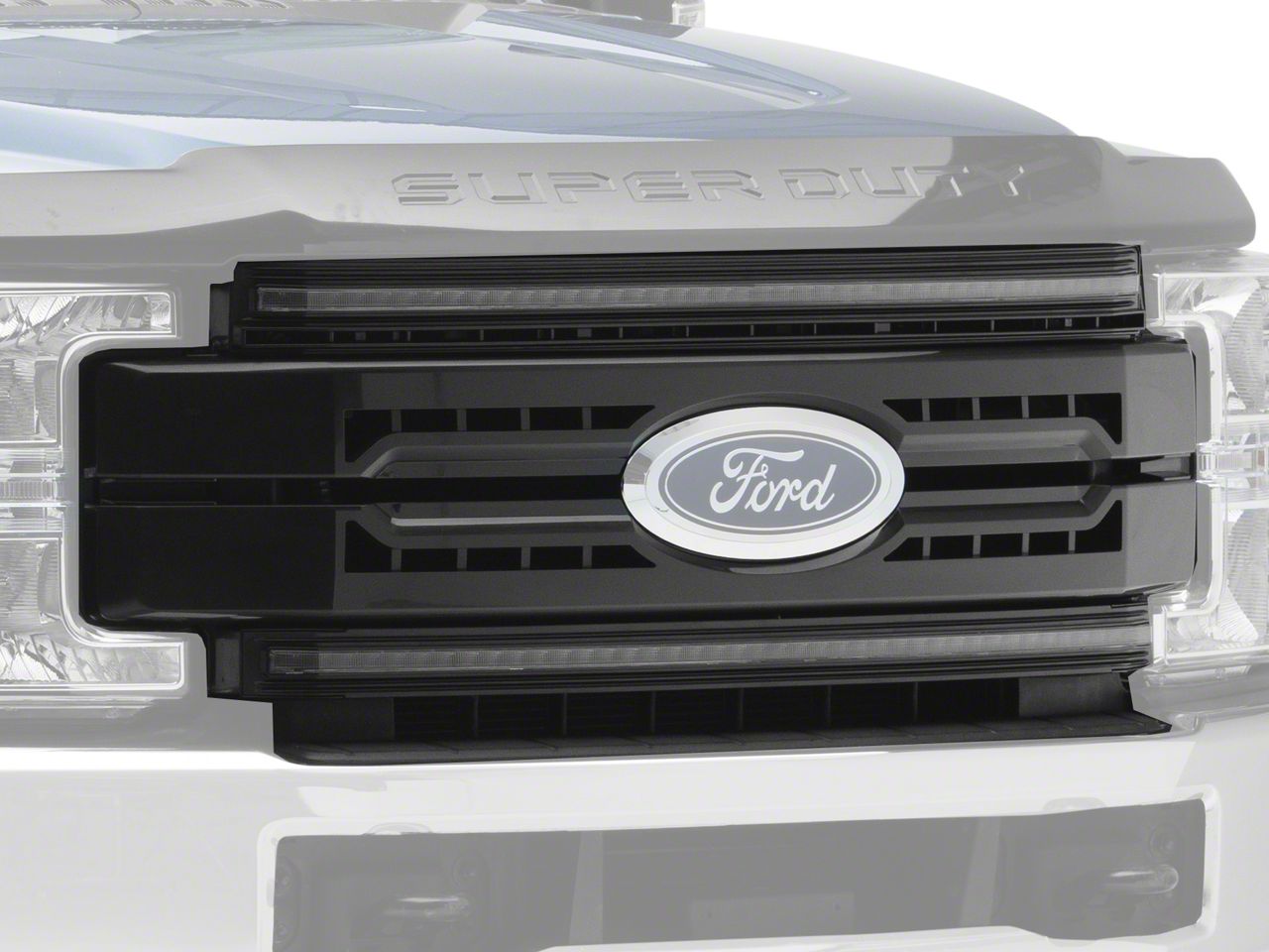 Enhanced Aesthetic Appeal. The OLM Essential Series Upper Replacement Grille with White DRL enhances the aesthetic appeal of your vehicle while also improving nighttime visibility. Featuring integrated LED lighting, this grille is suitable for both everyday driving and adventurous journeys, ensuring that your Ford F-350 stands out on the road.