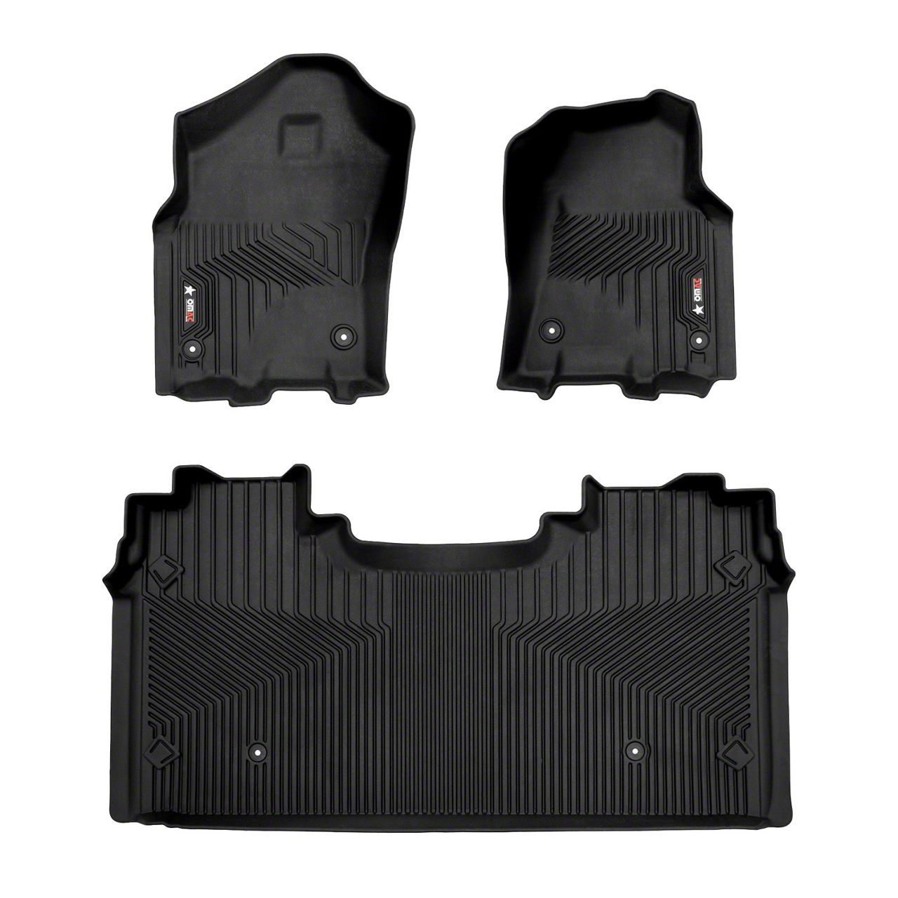 All-Weather Floor Protection. The OMAC Molded Texan Floor Liners are designed to provide comprehensive protection for your 2019-2026 RAM 1500 Crew Cab. Featuring a matte black finish and molded design, these floor liners offer both durability and a sleek appearance.
