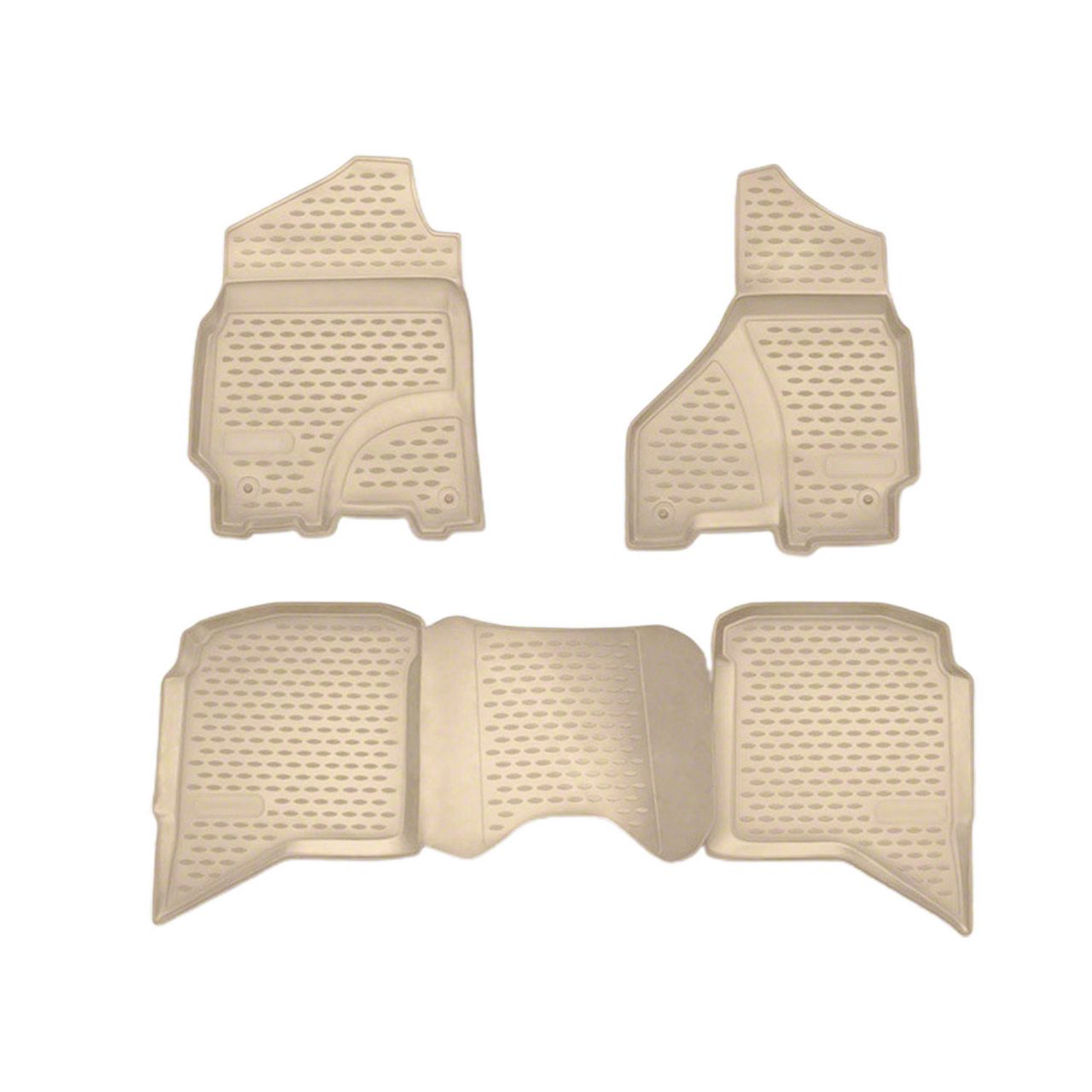 Durable and Stylish Floor Liners. Protect your RAM 2500 Crew Cab's interior with the OMAC All Weather Molded 3D Front and Rear Floor Liners in a sophisticated beige color. These custom-molded liners are specifically designed to fit the contours of your vehicle, providing comprehensive floor coverage.