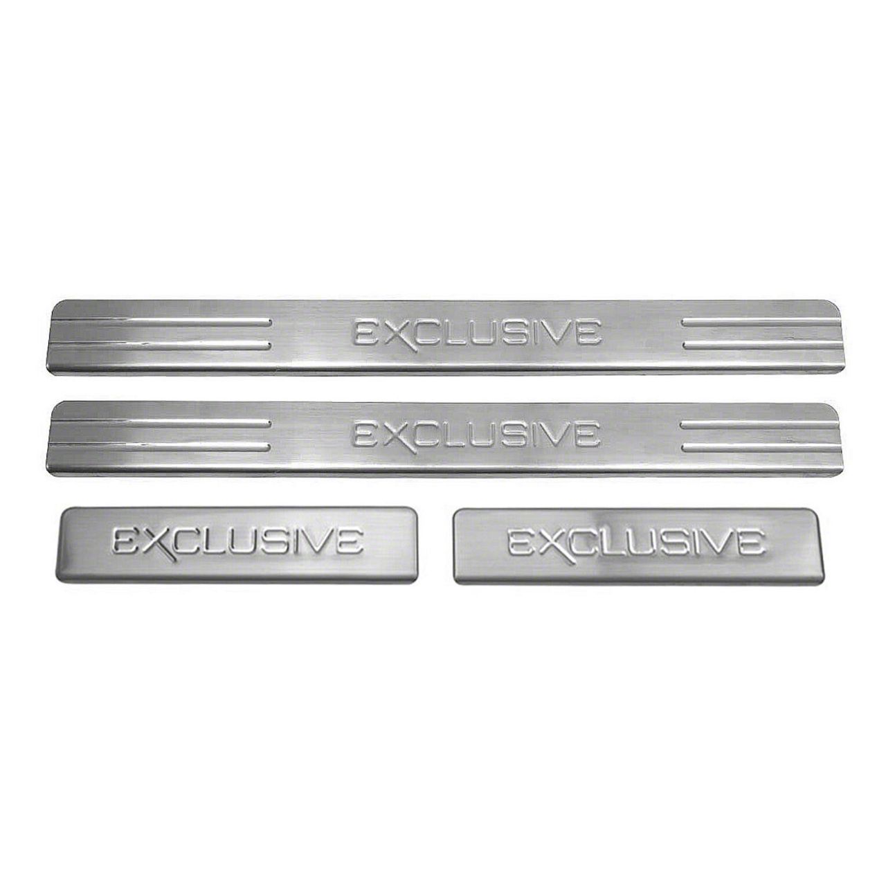 Construction and Appearance. Crafted from automotive-grade stainless steel, these scuff plates feature a polished chrome finish that adds a refined touch to your door sills. The sturdy construction helps protect against scrapes, scratches, dents, and other potential damage, ensuring your door sills maintain a pristine look.
