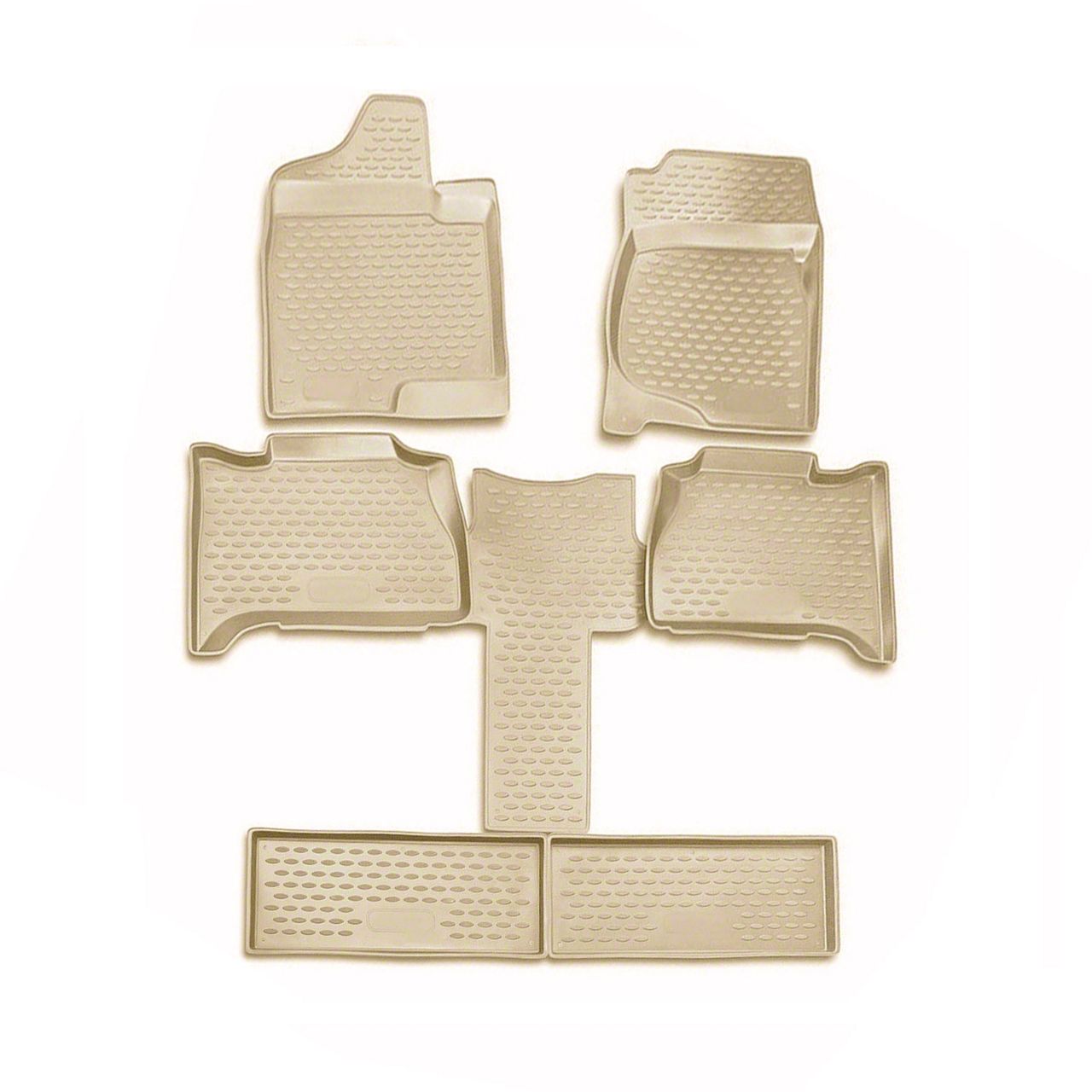 Construction and Appearance. Made from high-quality thermoplastic elastomer material, these floor liners are engineered to be waterproof and feature anti-slip properties for enhanced safety. They come in an elegant beige color and are custom-designed for a perfect fit, resisting damage from chemicals, abrasion, and UV rays.