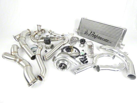 Construction and Appearance. Built from premium materials, this system features a billet wheel turbocharger, 304 stainless steel hot-side components, and polished 6061 aluminum cold-side tubing. The V-banded connections and 3-inch intercooler ensure high durability and optimal performance, while five-ply silicone couplers and stainless T-bolt clamps add reliability under pressure. The clean, polished finish of the piping gives the engine bay a professional, high-performance look.