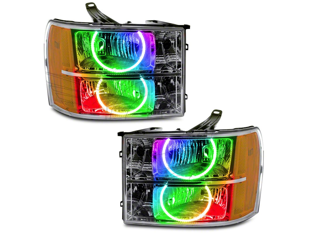 Application. Oracle Chrome OE Style Headlights with ColorSHIFT Round Ring LED Halos are designed to fit all 2007 to 2013 GMC Sierra trucks.