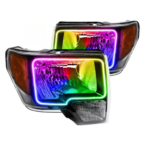 Bright ColorSHIFT Halos. Made for the Ford F-150 models with factory halogen headlights, these Oracle Headlights come in pairs with a matte black finish housing and clear lenses. Built in the stock style, these direct replacement headlights come with Oracle’s ColorSHIFT halos that give them a colorful rainbow glow. FMVSS and SAE compliant, these headlights are a great visual upgrade to your ride.