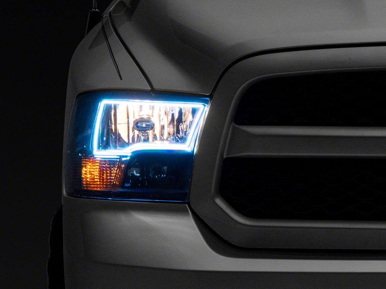 Application. The Oracle OE Style Headlights with LED Halo; Black Housing; Clear Lens fits 2009-2018 RAM 1500 with Factory Halogen Dual and Quad Headlights.