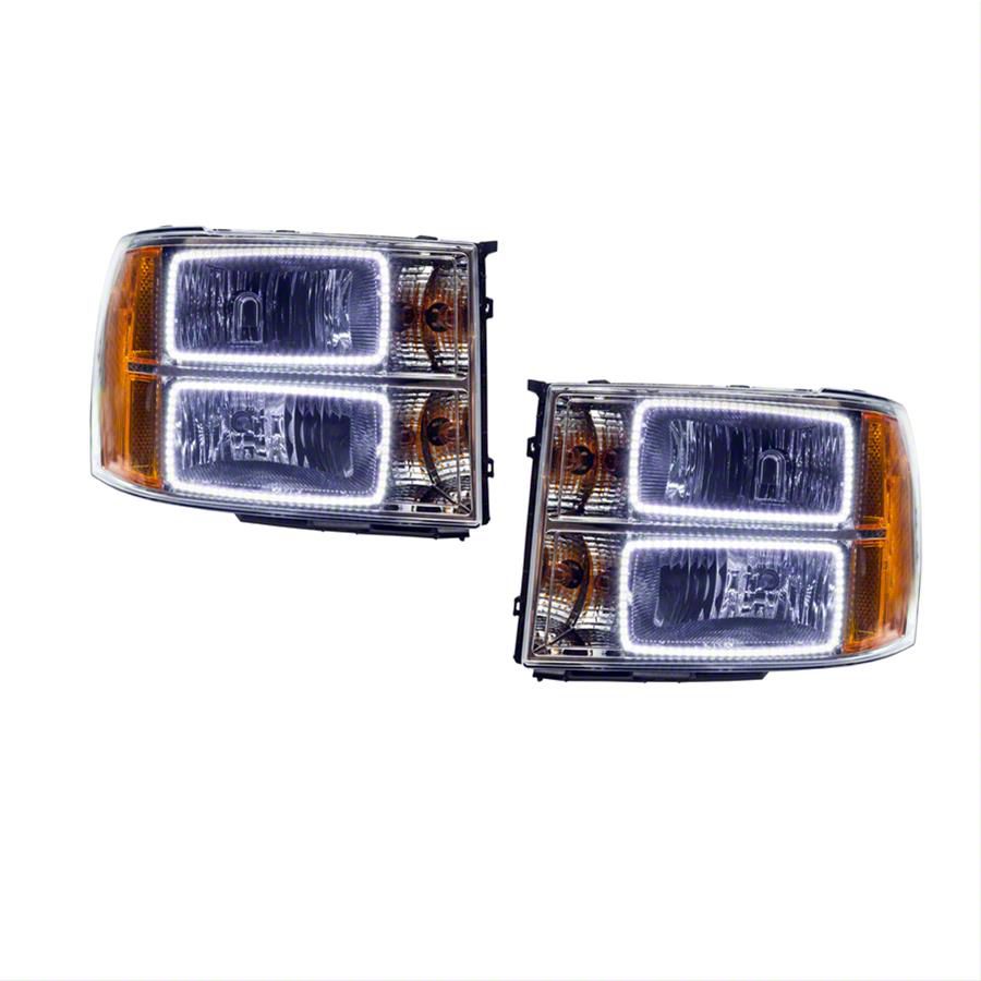 Application. The Oracle OE Style Headlights with ColorSHIFT Square Ring LED Halo fit 2007-2014 Sierra 2500 HD models.