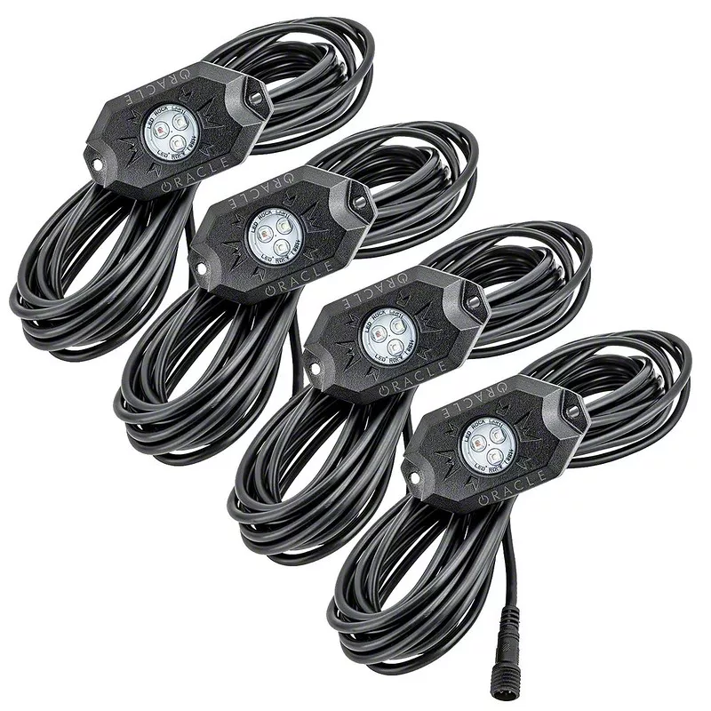 Better Visibility and Style. To make your ride more visible to other motorists and give it a unique custom touch, choose this highly-efficient Bluetooth RF multicolor LED rock light kit from Oracle Lighting. With heavy-gauge wiring and waterproof construction, this kit is built to last in the most extreme conditions. This allows for greater visibility for the driver to safely navigate off-road obstacles including rocks, mud, water, and sand. Another great thing is that ColorSHIFT Technology allows you to select from thousands of colors and different modes! Control the functions and colors of your kit via the Bluetooth App, free to download in your app store.