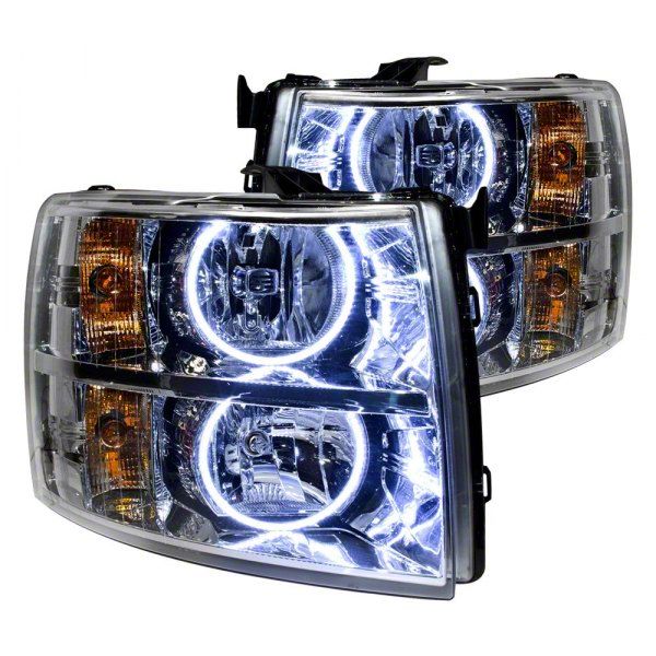 Stylish and Functional Headlights. The Oracle OE Style Headlights with Round Ring LED Halo enhance your vehicle's lighting performance and aesthetic appeal. Specifically engineered for 2007-2014 Chevrolet Silverado 3500 HD models, these headlights ensure a perfect fit and superior illumination.