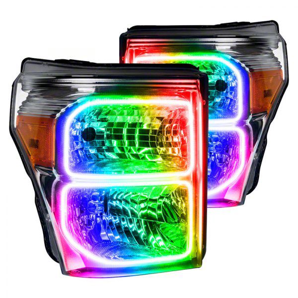 The Oracle OE Style Headlights with ColorSHIFT Halo; Chrome Housing; Clear Lens 2011-2016 F-250 Super Duty models.