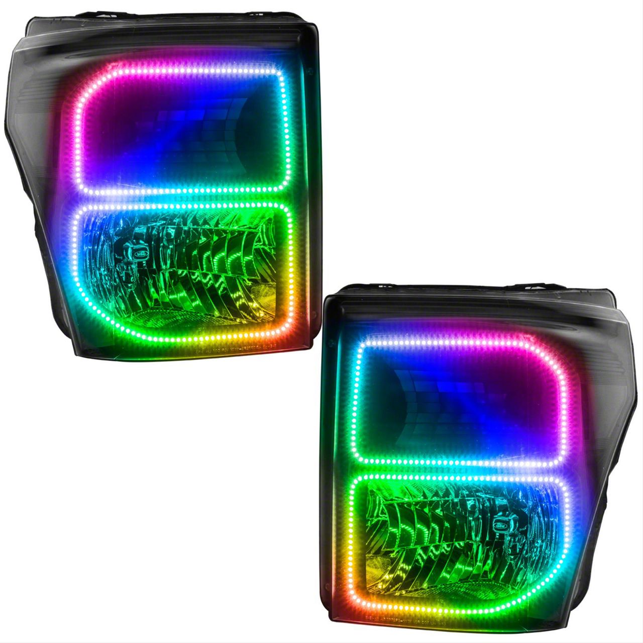 The Oracle OE Style Headlights with ColorSHIFT Halo; Black Housing; Clear Lens fits 2011-2016 F-250 Super Duty models.