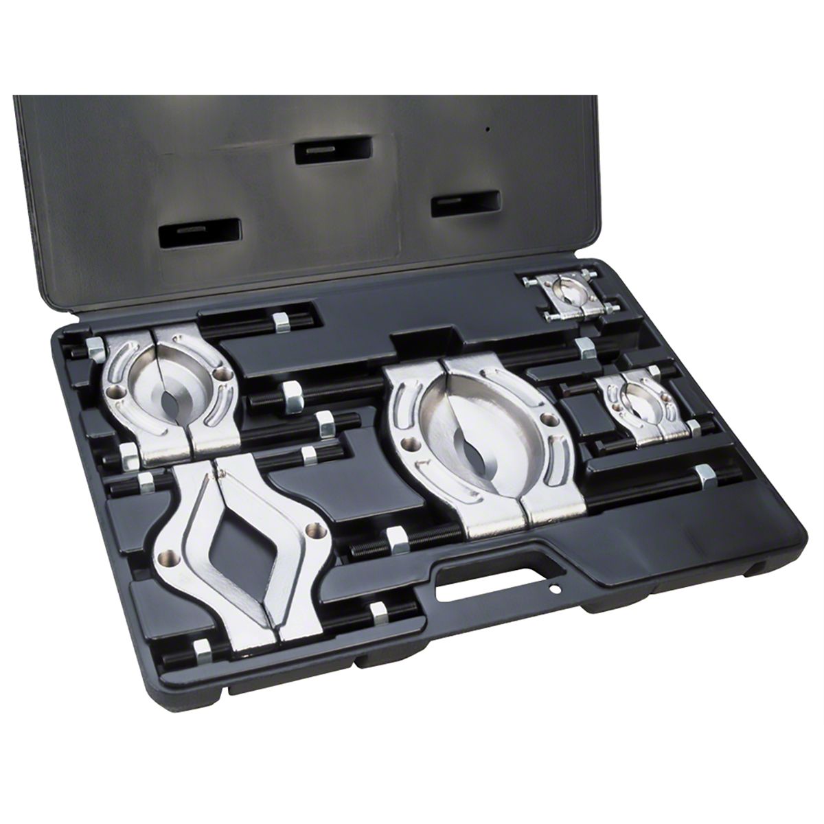• This combo pack contains four of OTC's most popular bearing splitters, plus a pulley pulling attachment. A rugged organizer case is included, enabling you to keep the tools together for instant use.