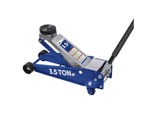 The LDJ35 is a 3-1/2-ton capacity service jack that is ideal for both a large automotive service center or a one-person shop. Under load, the dual-stage hydraulic unit can reach maximum height in 7 pumps. An extra wide lifting range increases the versatility for shops. A padded spring-loaded handle rapidly returns after each pump, allowing techs to lift the vehicle faster with less effort. Heavy-duty rolled edge construction adds strength and resists twisting for increased safety. Cycle tested design for a long life of professional duty. Ideal size for full-size pickups, SUVs and loaded tradesmen vehicles.