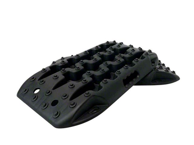 Construction and Appearance. Crafted from injection molded durable nylon, these recovery ramps are built to withstand loads of up to 10,000 pounds. The robust construction ensures longevity and reliability, making them a must-have for any off-road enthusiast. The matte black finish adds a sleek and professional look, complementing any vehicle.