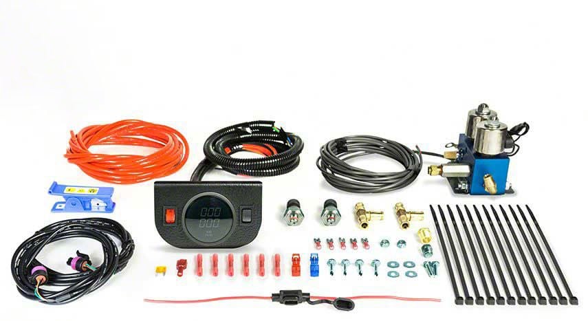 Streamlined Air Control. The Pacbrake Basic Simultaneous Electrical In-Cab Control Kit offers a user-friendly solution for managing your air suspension system. This kit includes a digital gauge with integrated switches, allowing for simultaneous inflation and deflation of your air springs directly from inside the cab. Designed to work in conjunction with Pacbrake air tanks and compressors, this system gives you full control over your ride height and suspension behavior with ease.
