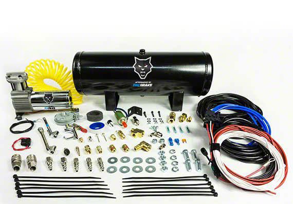Description. Onboard Air Kit with 2 1/2 Gallon Aluminum Air tank consists of air compressor, aluminum air tank, fittings, pressure switch, relay (s), electrical connectors and required accessories