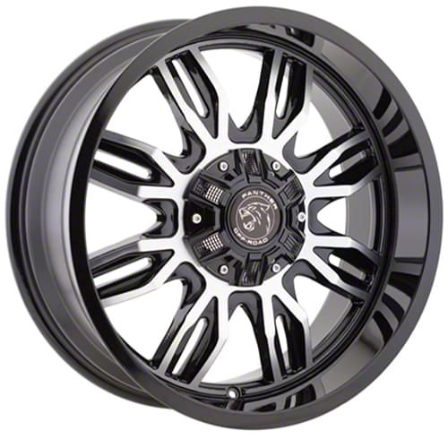 Panther Off Road 580 Gloss Black Machined 5-Lug Wheel; 20x9; -12mm Offset exudes sophistication with its finish, offering a sleek and modern appeal to any vehicle it adorns. The design is meticulously crafted to enhance the aesthetic of your vehicle, giving it a distinctive and upscale look. Perfect for those seeking to elevate their vehicle's style, this wheel blends seamlessly with both contemporary and classic vehicle designs, making it a versatile choice for a wide range of vehicles. Its robust construction ensures durability, making it a reliable choice for drivers who value both style and quality.