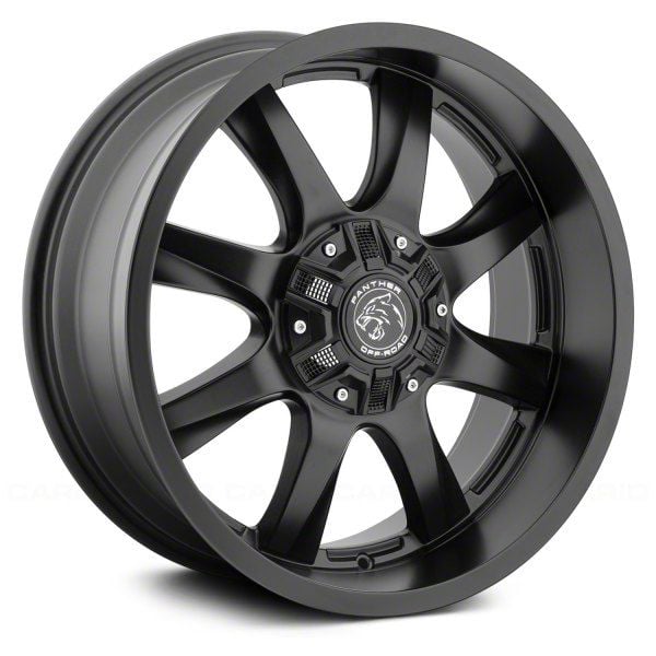 Panther Off Road 578 Flat Black 6-Lug Wheel; 20x9; -12mm Offset exudes sophistication with its finish, offering a sleek and modern appeal to any vehicle it adorns. The design is meticulously crafted to enhance the aesthetic of your vehicle, giving it a distinctive and upscale look. Perfect for those seeking to elevate their vehicle's style, this wheel blends seamlessly with both contemporary and classic vehicle designs, making it a versatile choice for a wide range of vehicles. Its robust construction ensures durability, making it a reliable choice for drivers who value both style and quality.