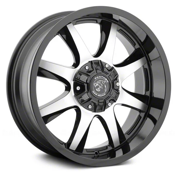 Panther Off Road 578 Gloss Black Machined 6-Lug Wheel; 20x9; 0mm Offset exudes sophistication with its finish, offering a sleek and modern appeal to any vehicle it adorns. The design is meticulously crafted to enhance the aesthetic of your vehicle, giving it a distinctive and upscale look. Perfect for those seeking to elevate their vehicle's style, this wheel blends seamlessly with both contemporary and classic vehicle designs, making it a versatile choice for a wide range of vehicles. Its robust construction ensures durability, making it a reliable choice for drivers who value both style and quality.