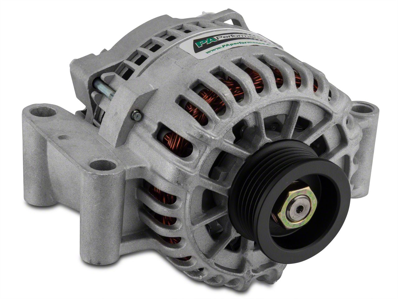 Durable Construction. This PA Performance Alternator is 100% new and come complete with internal voltage regulator and pulley that uses the factory belt and has a standard aluminum finish. All PA Performance Alternators are tested at the time of assembly to ensure reliability. Note: It is highly recommended that due to the increased output of this performance alternator that the main power wire be upgraded to handle the higher amperage output.