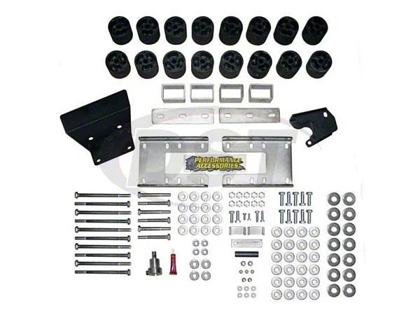 Lifted Factory Ride Quality. The Performance Accessories 3-Inch Body Lift Kit delivers an aggressive stance while preserving your RAM 1500's factory ride quality. This lift solution provides clearance for larger tires and improved ground presence without compromising suspension geometry. Designed for precision and long-term reliability, it's the ideal upgrade for off-road readiness and aesthetic appeal.