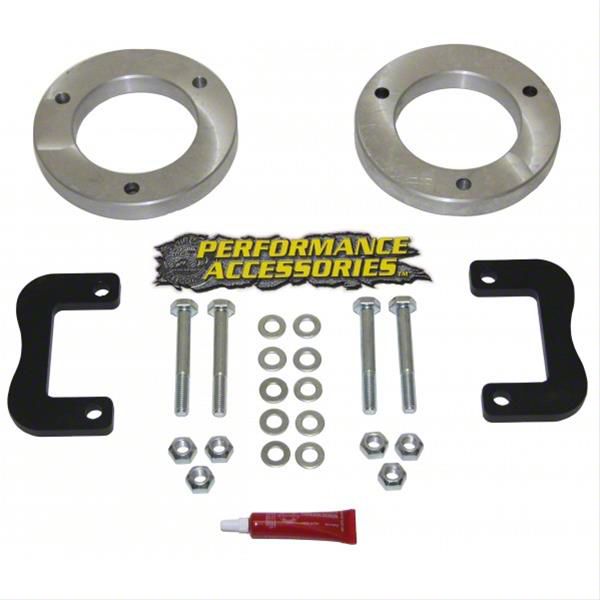 Description. Performance Accessories now offers an easy-to-install CL230PA 2.25 inch leveling kit for Chevy/GMC 1500 pickups and SUVs that levels the front-to-rear stance of the vehicle. This CL230PA leveling kit features a heavy-duty pair of two-piece aluminum top strut spacers and steel lower bar pin shims. Each is precision machined and laser cut to ensure the highest quality and fitment. Installation of CL230PA allows the vehicle to run up to a 33 inch diameter tire. This CL230PA system does not need a coil spring compressor and can be installed in 1-2 hours.
