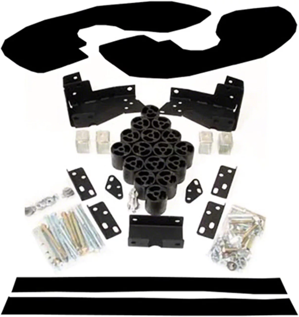 Performance Accessories PAPLS 108 Premium Lift System raises the vehicle 5-inches, by combining the company's high-quality body-lift and leveling kit, allowing the vehicle to run up to a 34-inch (actual diameter size) tire. The kit includes steel coil spring and strut spacers, high pressure fiberglass reinforced nylon lift blocks, 3/16 inch thick laser cut and powder coated bumper relocation brackets, a CNC machined and zinc plated steering extension, high strength hardware, extension brackets, and urethane wheel-well extensions (Gap Guards) that conceal any gaps between the body and frame. This system can be installed in 9 to 10 hours and comes complete with everything necessary for installation.
