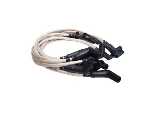 Description. Performance Distributors LiveWires are a high quality, low resistance set of spark plug wires designed to deliver all of the spark energy from the coil to the plugs. LiveWires are built with a high temperature sleeve that protects the plug wire from the extreme under hood temperatures. The sleeving is made from a non-flammable heat treated glass braid, much like the type that is used on today’s ovens. This unique sleeving provides heat protection up to +1400° F and offers excellent resistance to moisture and chemicals. Inside this high temperature sleeve is an 8mm spiral core wire with a durable and lasting silicone jacket. The spiral core consists of a stainless steel wire wrapped around a magnetic core. This offers an extremely low resistance value of 300 – 350 Ohms per foot for optimum spark travel. Spiral core wire is also radio suppression, so there is no electronic interference with the radio and they work great with delay boxes and stutter boxes.