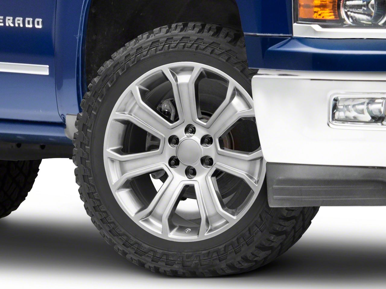 Application. This Performance Replicas PR166 Hyper Silver 6-Lug Wheel; 22x9; 24mm Offset with a backspace of 5.945 Inch, 151.1mm; and bolt pattern of 6 x 139.7mm (6 x 5.5-Inch), contributes to alignment, driving stability, and ensures a perfect fit with the vehicle model. Designed to fit the 2014-2018 Sierra 1500. Sold individually.