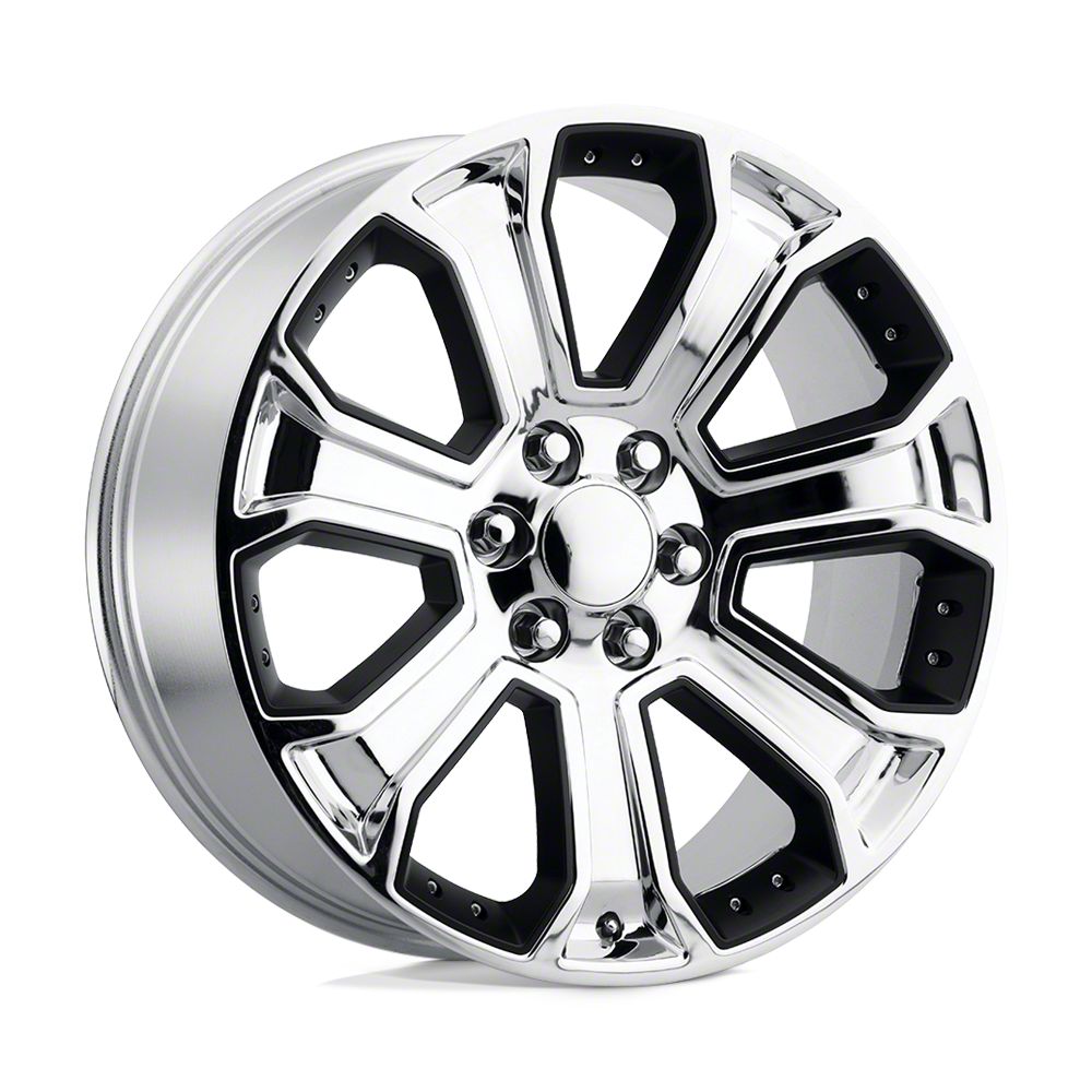 Application. This Performance Replicas PR113 Chrome with Matte Black Accents 6-Lug Wheel; 20x9; 24mm Offset, with a backspacing of 5.945 Inch, 151mm and a bolt pattern of 6 x 139.7mm (6 x 5.5-Inch), is designed to fit 2014-2018 models. Sold individually.
